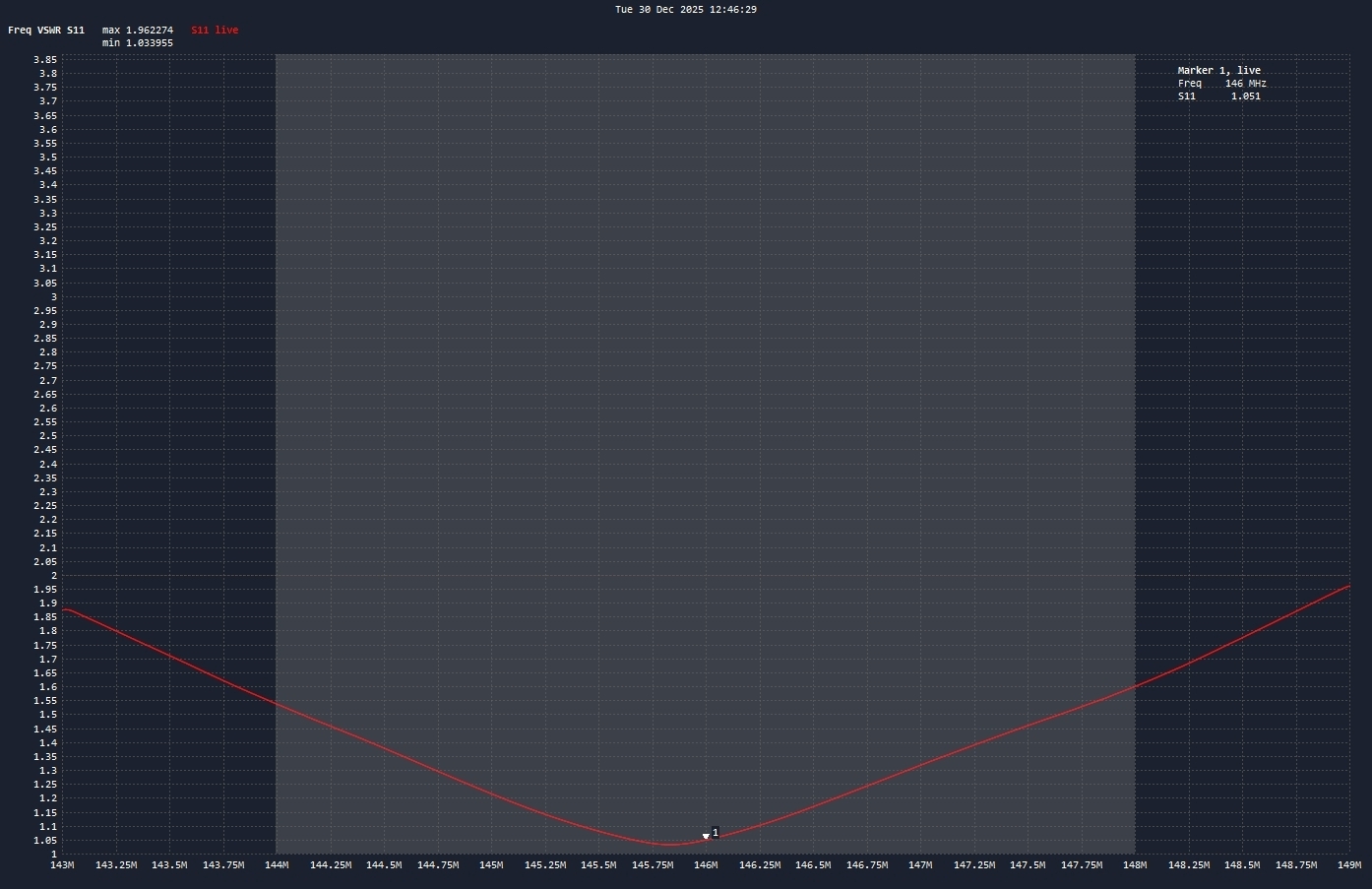 SWR: Has been measured as low as: 1.3:1 @ 146 MHz, 1.5:1 @ 440 MHz